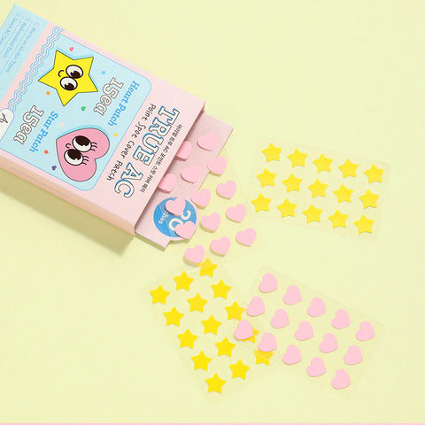 Ariul True AC Point Spot Cover Patch sisältää 30 kappaletta finnilaastareita, 15 kappaletta sydämenmuotoisia ja 15 kappaletta tähdenmuotoisia finnilaastareita.
