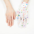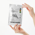 Ta ut handmaskerna ur förpackningen, riv upp dem längs den perforerade linjen och ta på dem. Fäst maskerna runt handlederna med de medföljande ringtejperna och låt verka i 15–20 minuter.